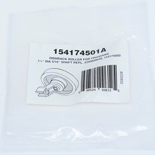 4 Pack of Dishwasher Lower Rack Roller Wheel with Clip for Frigidarire, part number 154174501A.