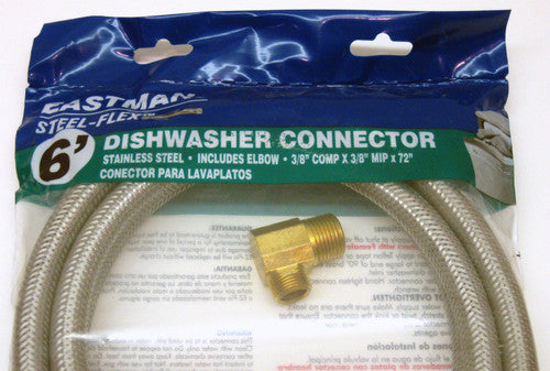 48365 Dishwasher Water Supply Connector 6' Stainless Steel SS Line w/ Elbow