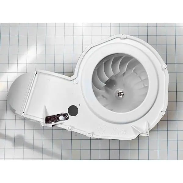 Replacement blower wheel and housing used on some Crosley, Electrolux, Frigidaire, Gibson, Kenmore, and White Westinghouse dryer models.