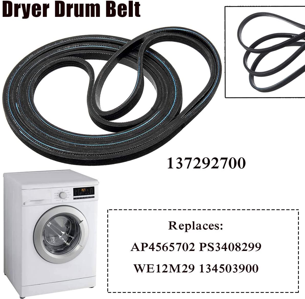 Replacement drive belt used on Crosley, Electrolux, Frigidaire, Gibson, Kelvinator, Kenmore, Montgomery Ward, Tappan, and Westinghouse dryer models.