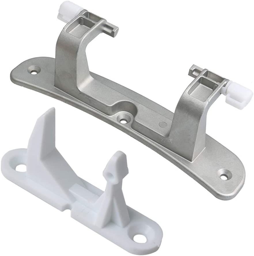 Replacement door hinge and strike kit used on some Crosley, Electrolux, Frigidaire, Gibson, Kenmore and Westinghouse washer models.