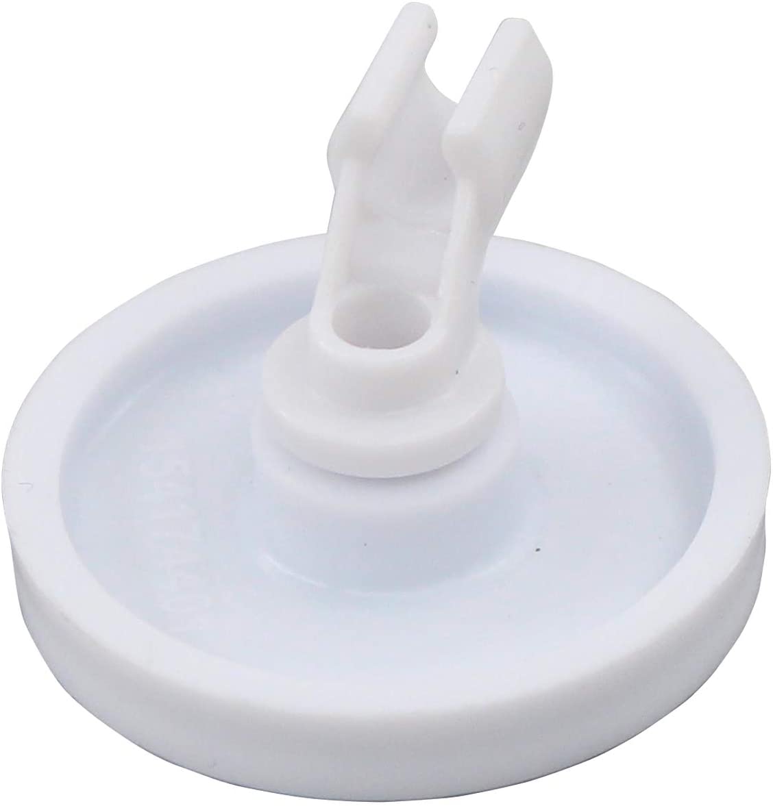 Replacement lower dish rack roller and axle used on some Frigidaire, Gibson, Kelvinator, Kenmore, Montgomery Wards, Tappan, Universal, and Westinghouse dishwasher models.