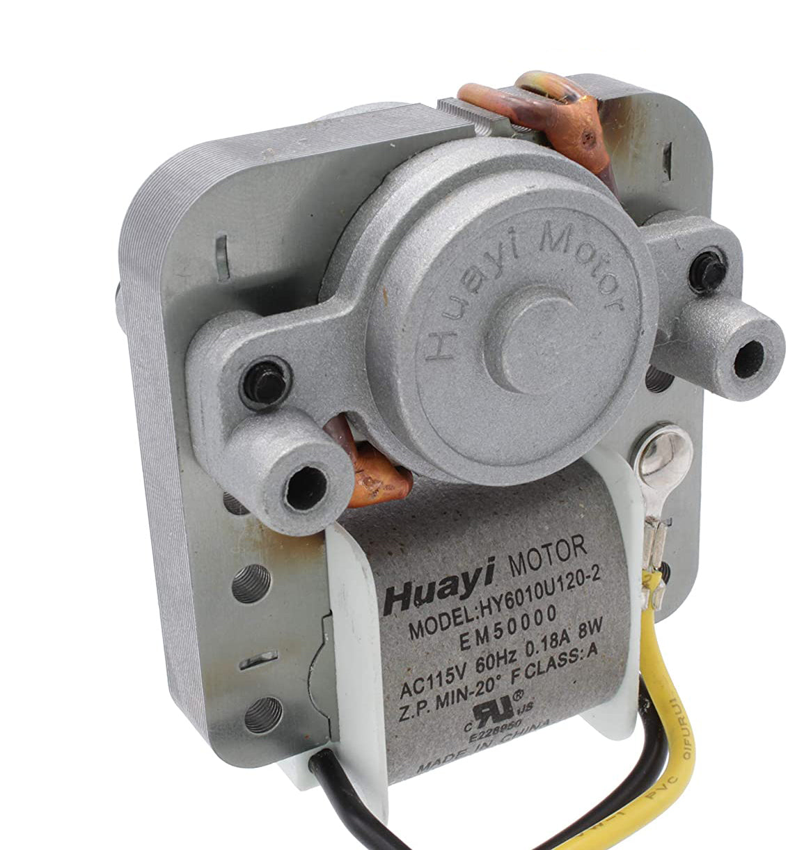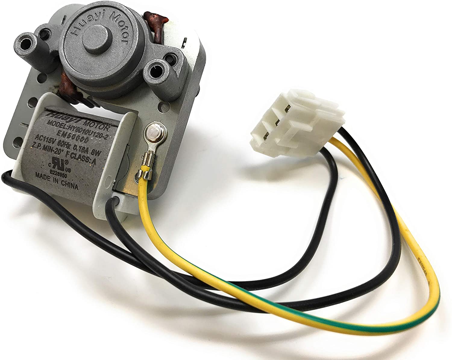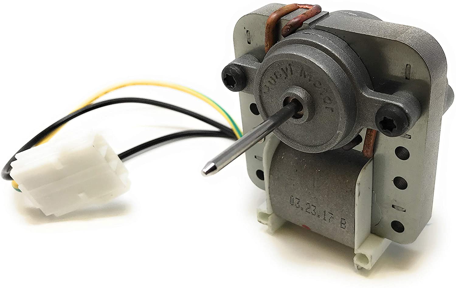 Replacement evaporator fan motor used on some Crosley, Electrolux, Frigidaire, Gibson, Kelvinator, Kenmore, Tappan, and White Westinghouse refrigerator models.
