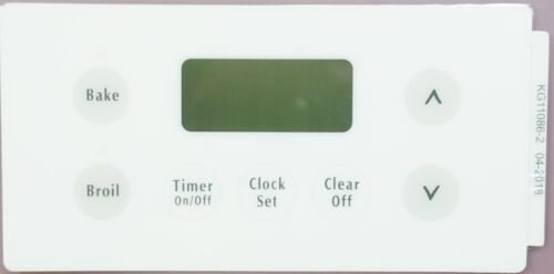 Replacement control overlay used on some Crosley, Frigidaire, Kenmore, and Westinghouse range models.