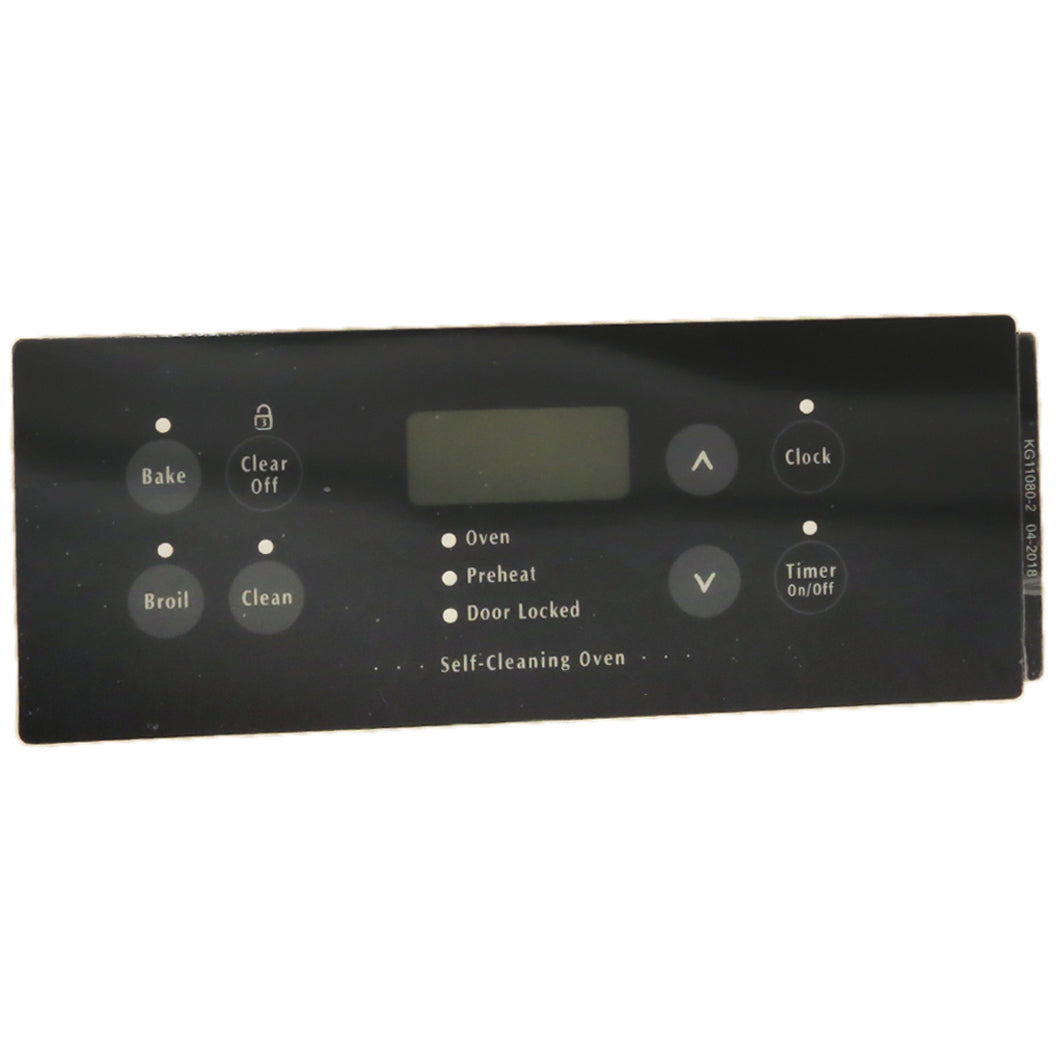 Replacement control overlay used on some Frigidaire, Kenmore, and Tappan range models.