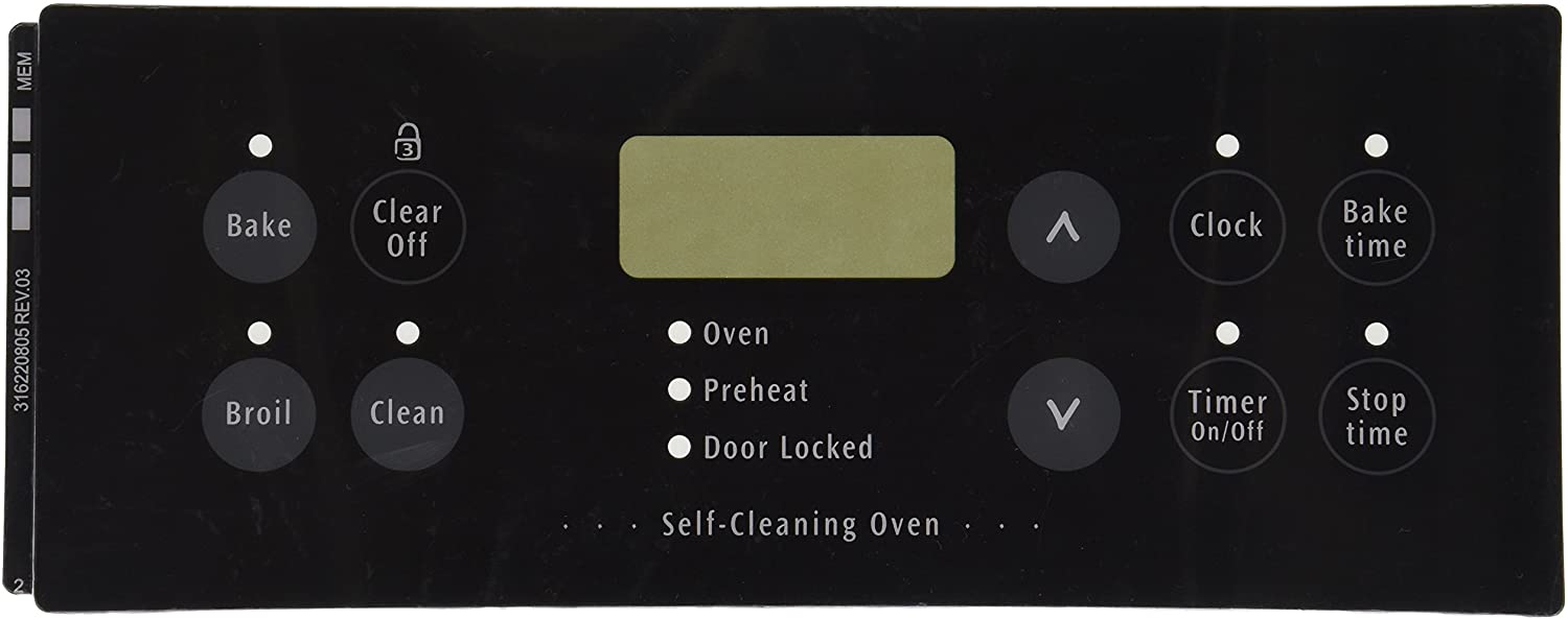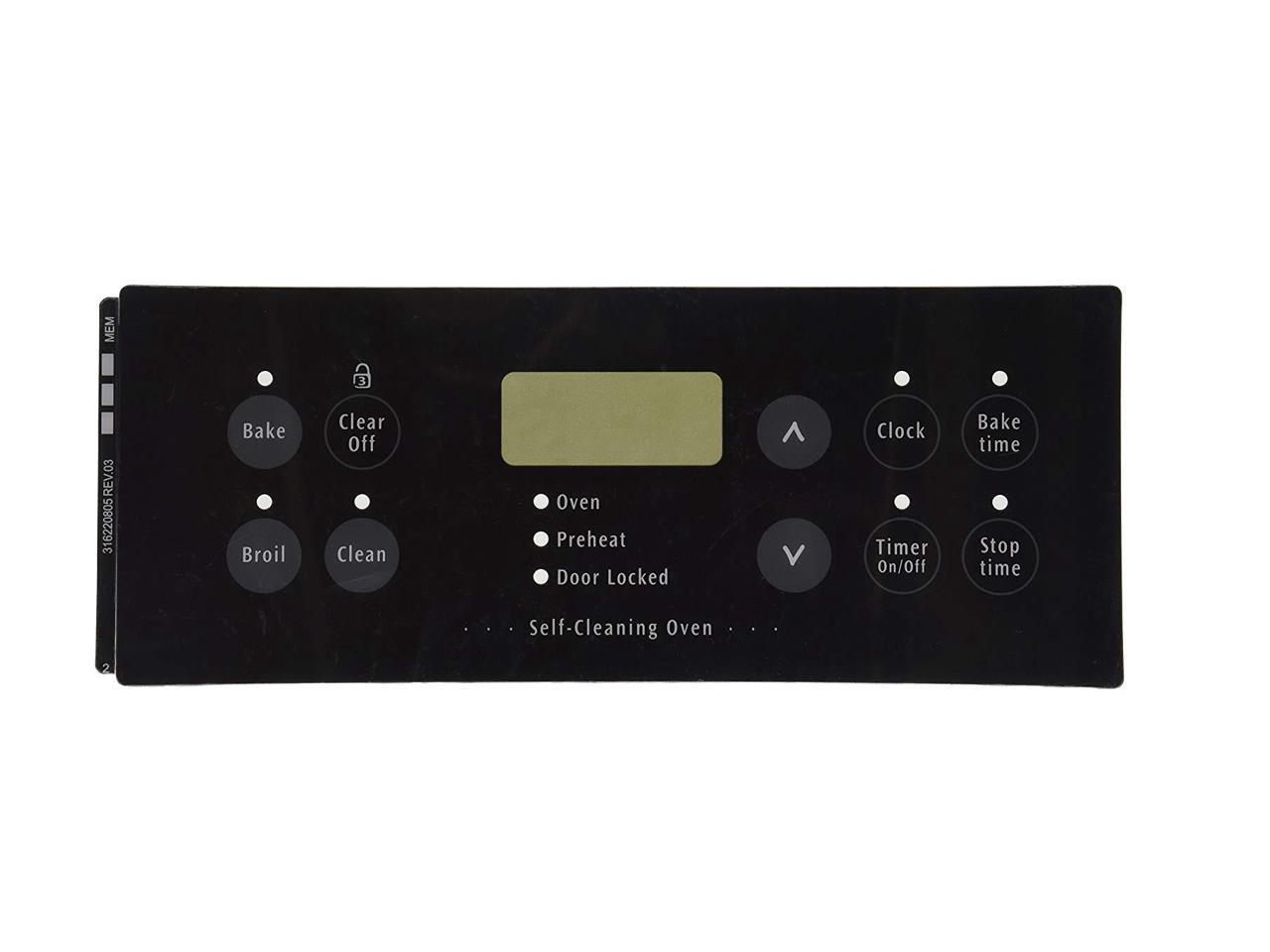 Replacement control overlay used on some Frigidaire and Kenmore range models.