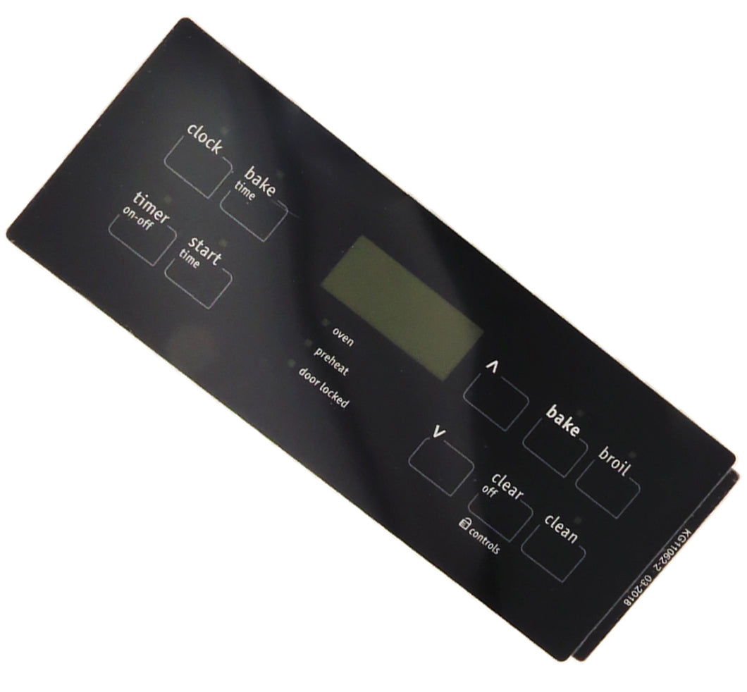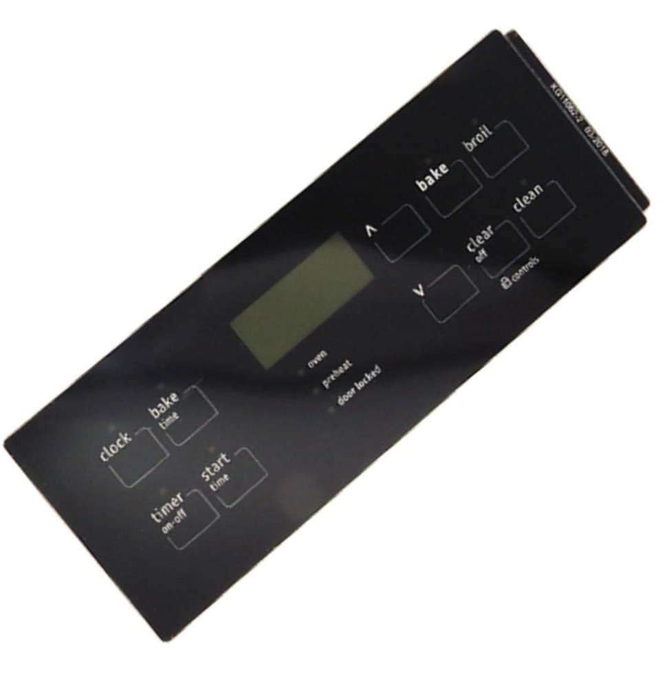 Replacement control overlay used on some Crosley, Frigidaire, and Kenmore range models.