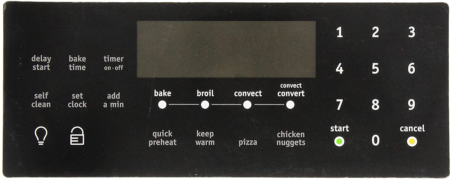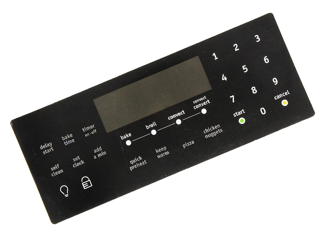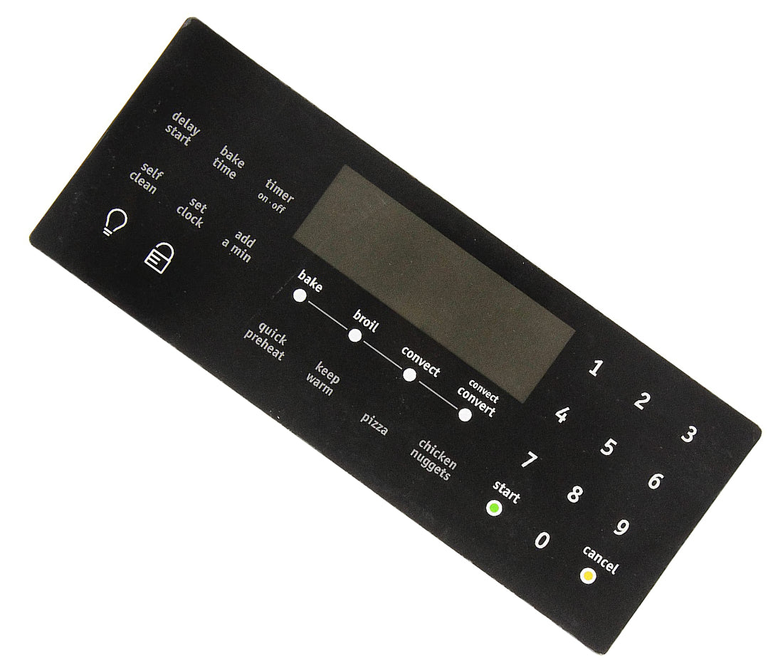 Replacement control overlay used on some Frigidaire range models.