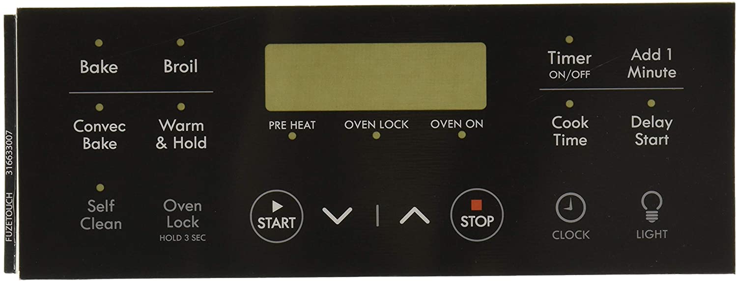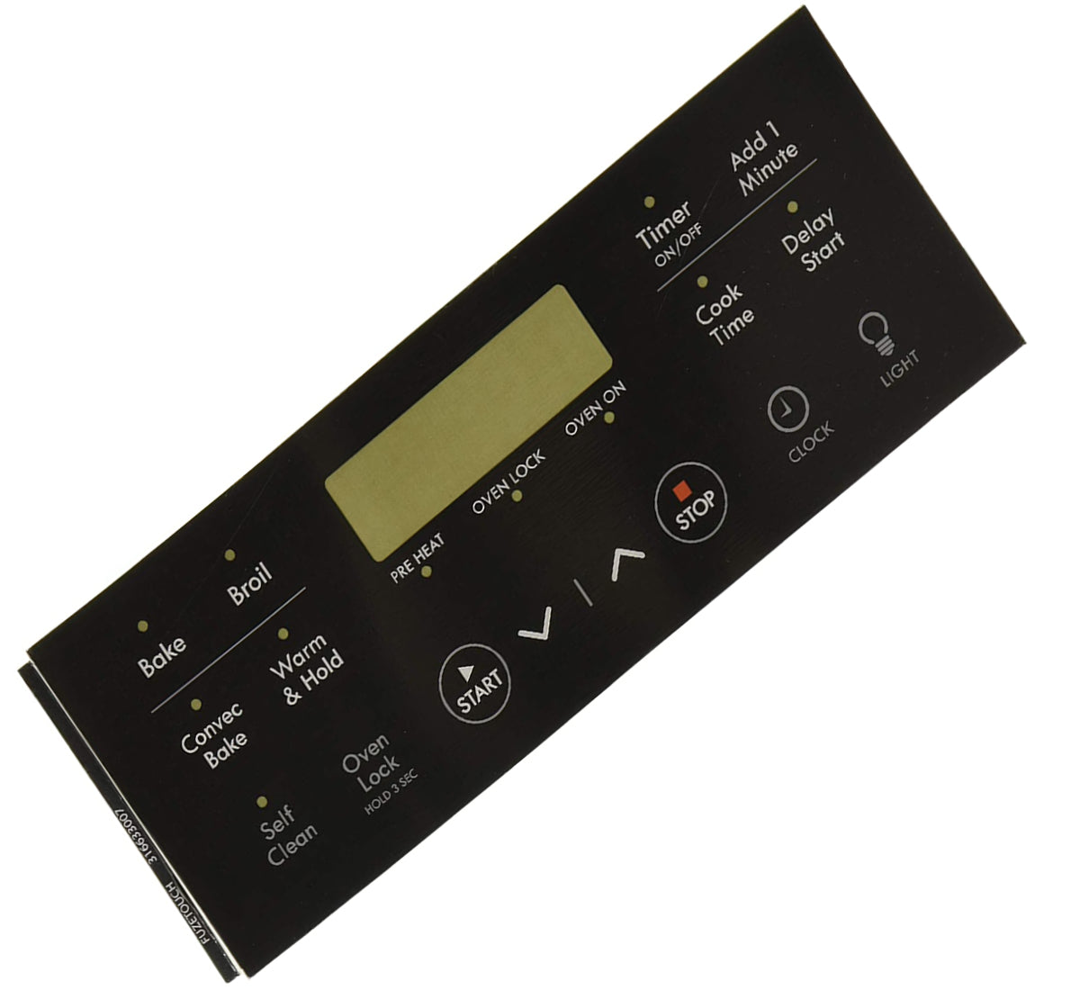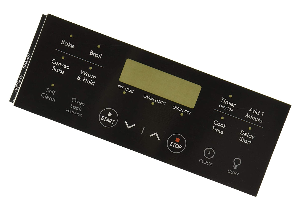 Replacement control overlay used on some Frigidaire and Kenmore range models.