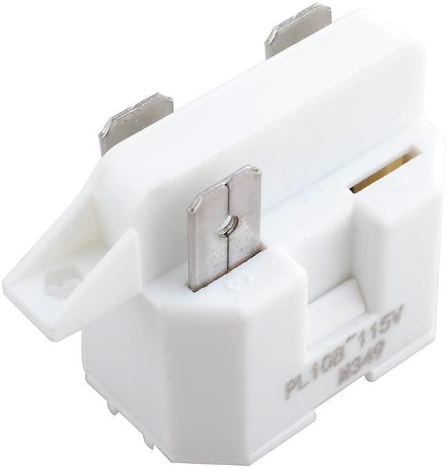 Replacement relay used on some Admiral, Amana, Crosley, Frigidaire, GE, Gibson, Hotpoint, Jenn-Air, Kelvinator, Kenmore, KitchenAid, Magic Chef, Maytag, Montgomery Wards, RCA, Tappan, Universal and Whirlpool refrigerator models.