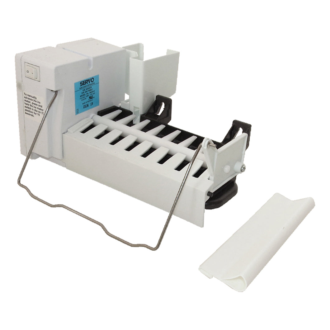 Replacement ice maker assembly used on some Electrolux, Frigidaire, and Kenmore refrigerator models.