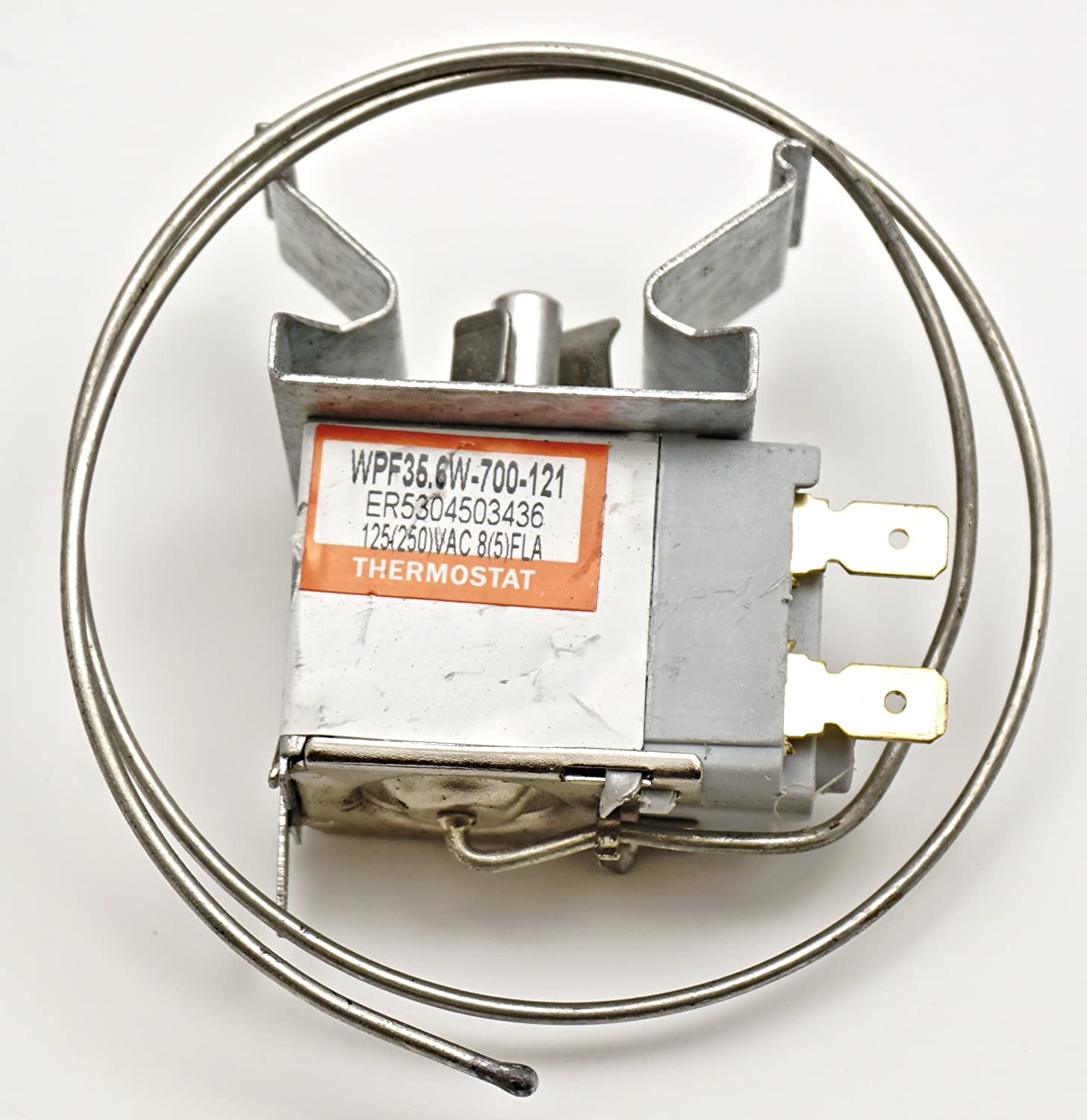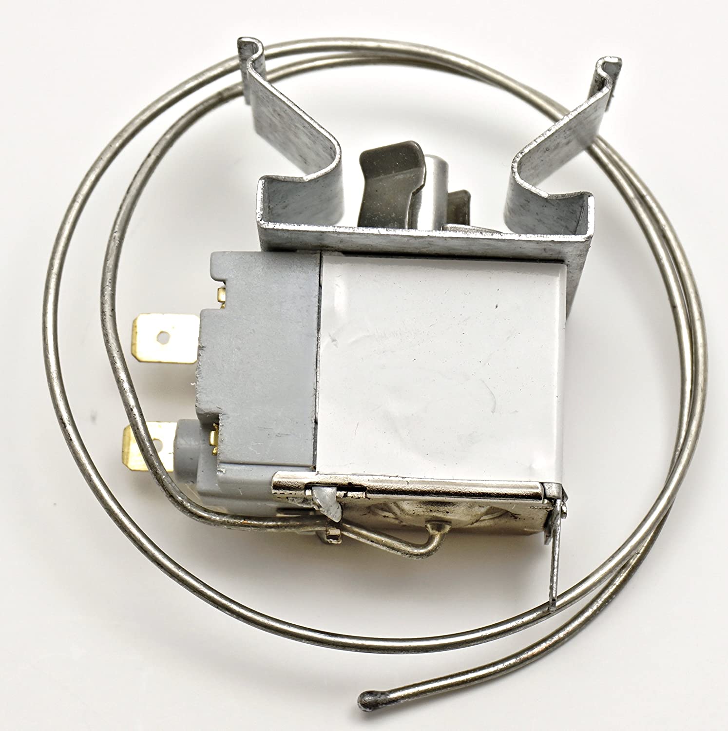 Replacement thermostat used on some Crosley, Frigidaire, Gibson, Kenmore, and Westinghouse freezer models.