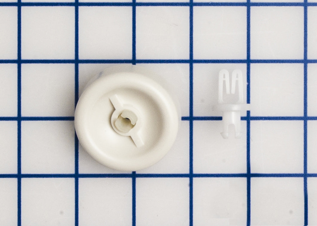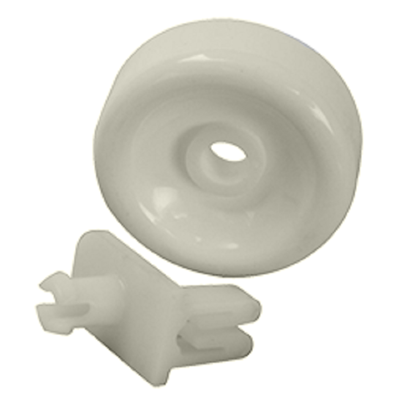 Replacement lower rack roller assembly used on some Admiral, Crosley, GE, Hotpoint, Jenn Air, Kenmore, Magic Chef, Maytag, Montgomery Wards, Norge and RCA dishwasher models.