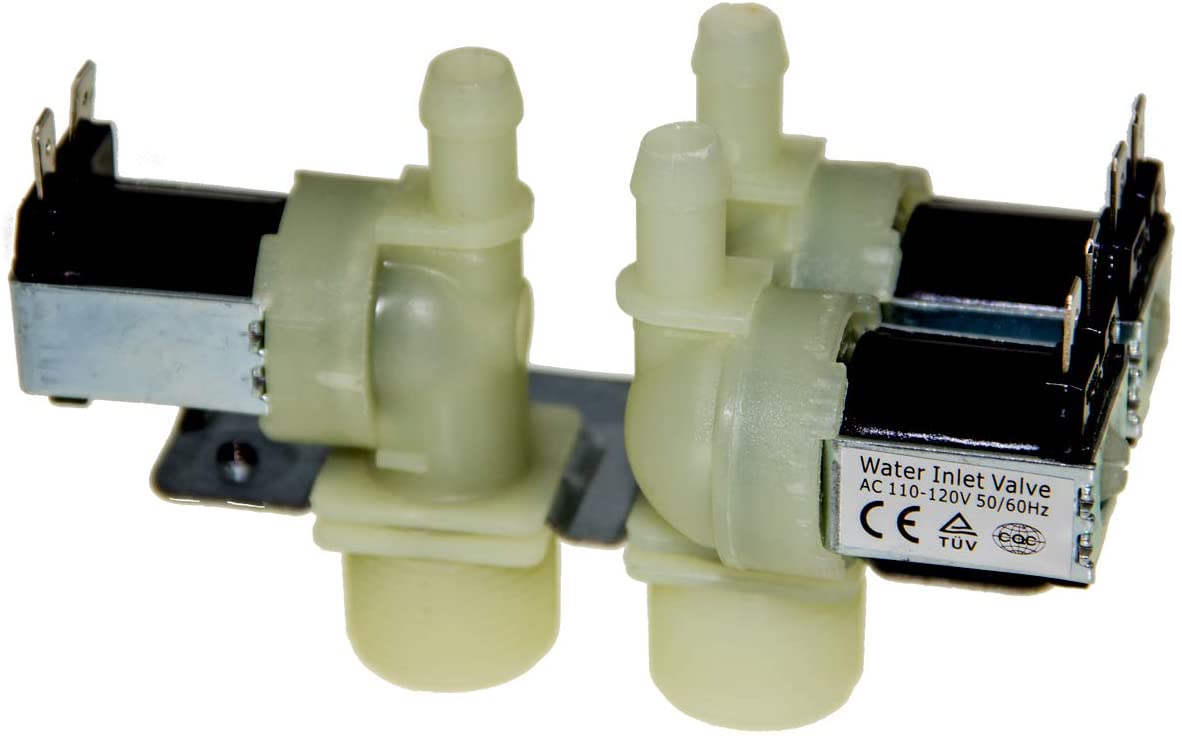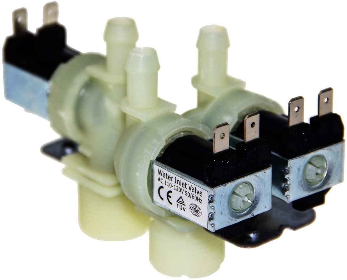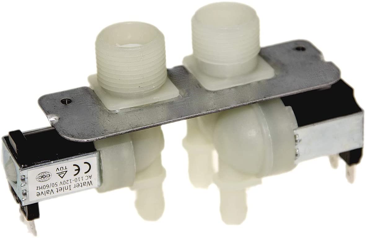 Replacement water inlet valve used on some GE washer models.