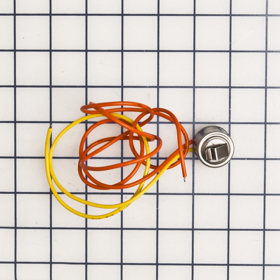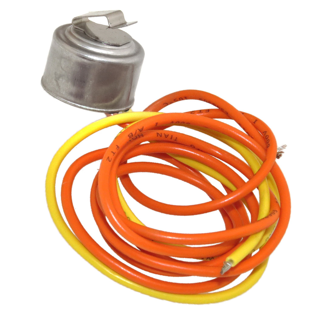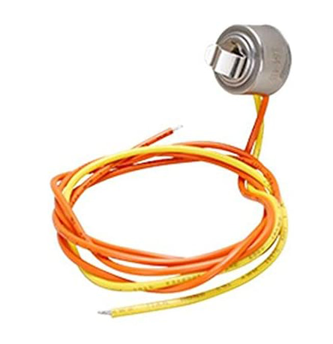 Replacement defrost thermostat used on some Americanan, GE, and Hotpoint refrigerator models.