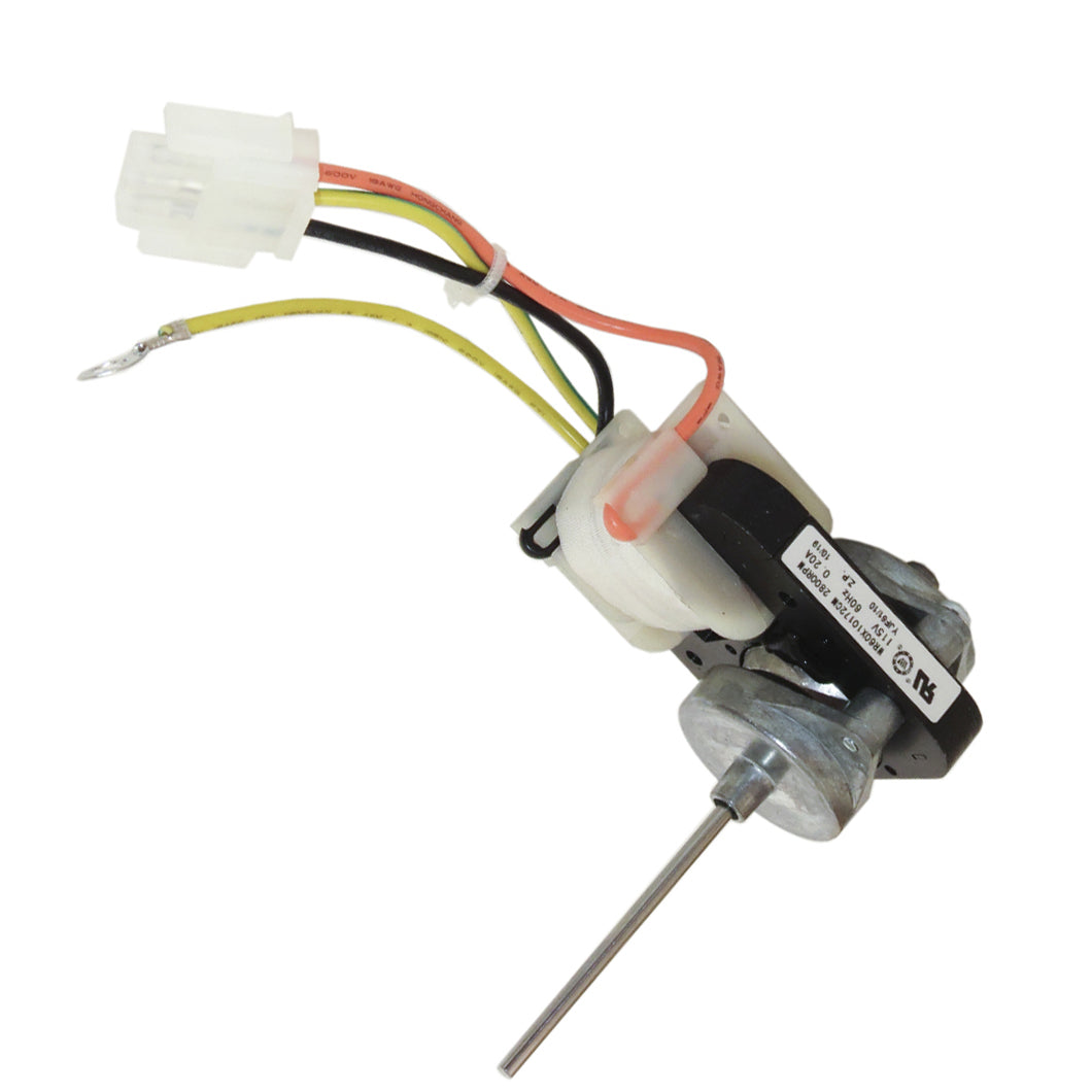 Replacement evaporator fan motor used on some GE and Hotpoint refrigerator models.