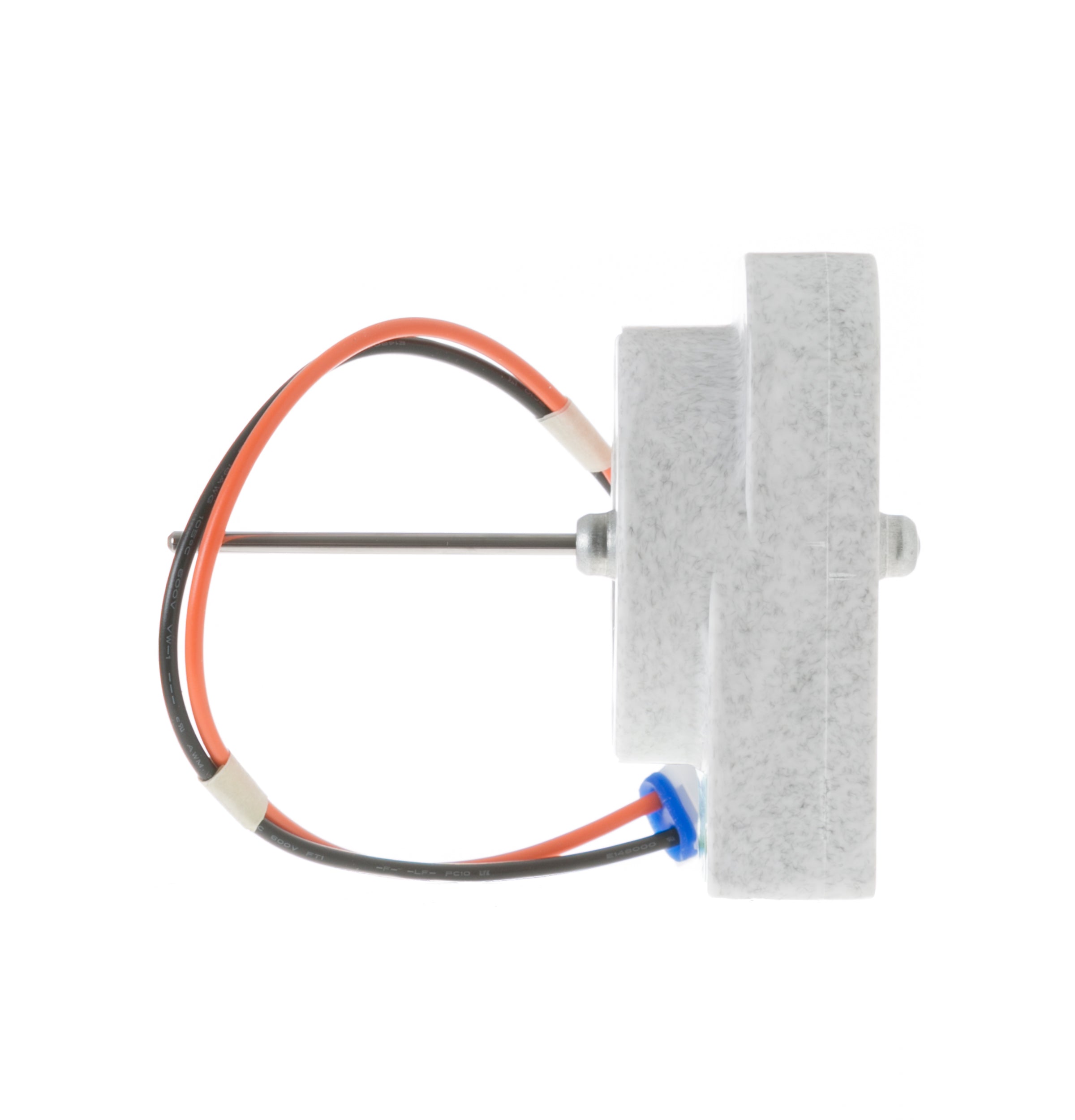 Replacement evaporator fan motor used on some GE and Hotpoint refrigerator models.