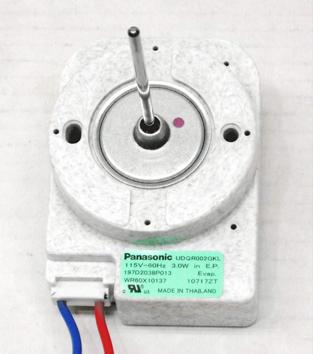 Replacement evaporator fan motor used on some GE refrigerator models.