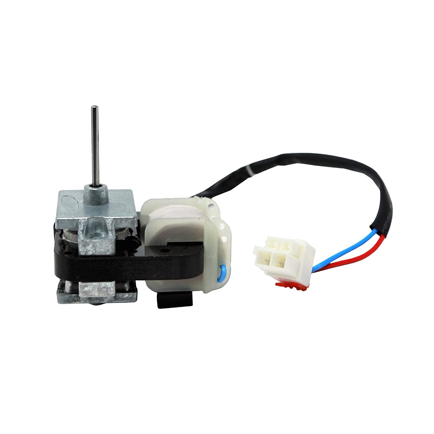 Replacement condenser fan motor used on some Maytag and Samsung refrigerator models.