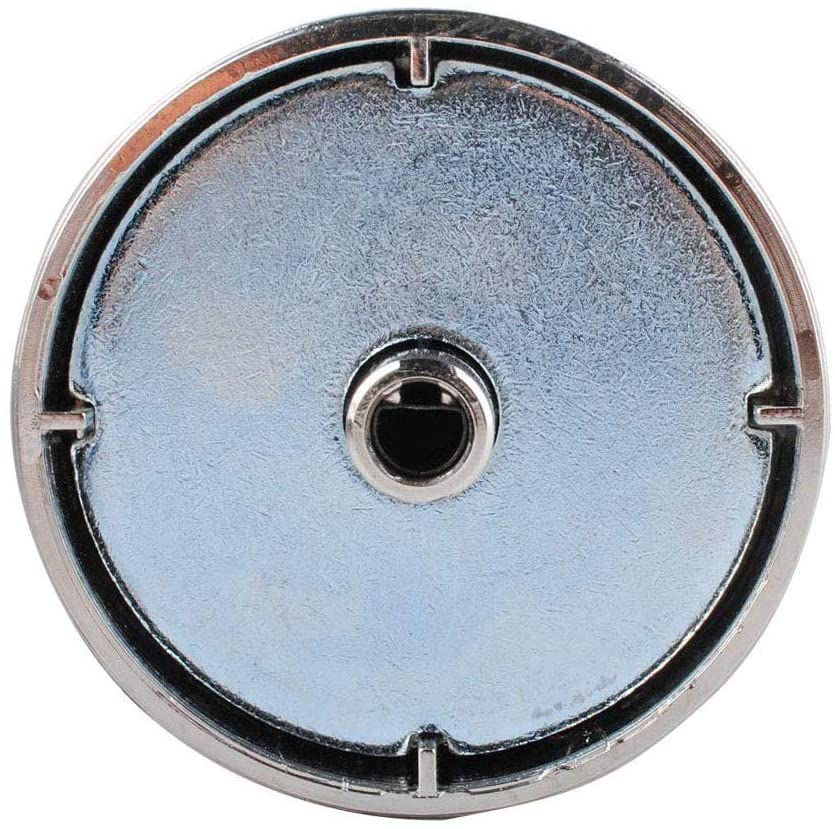 - Metal knob with a stainless steel finish and red indicator.