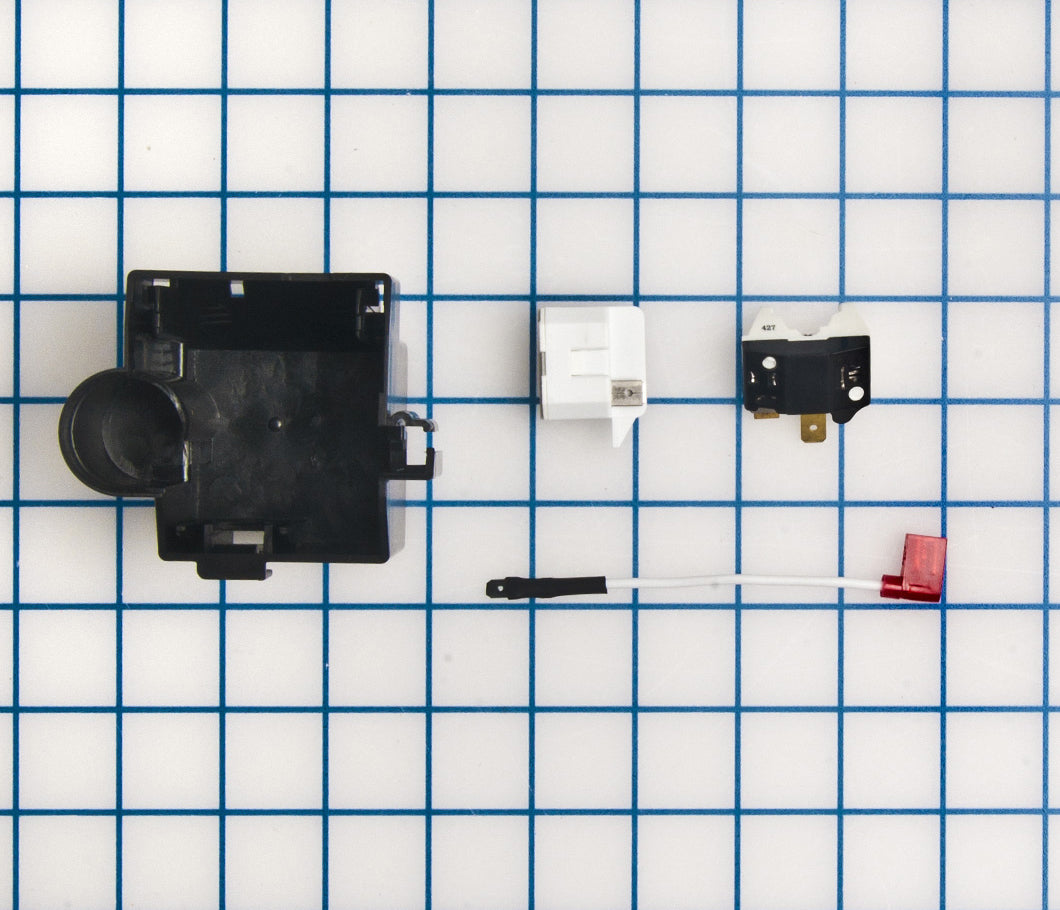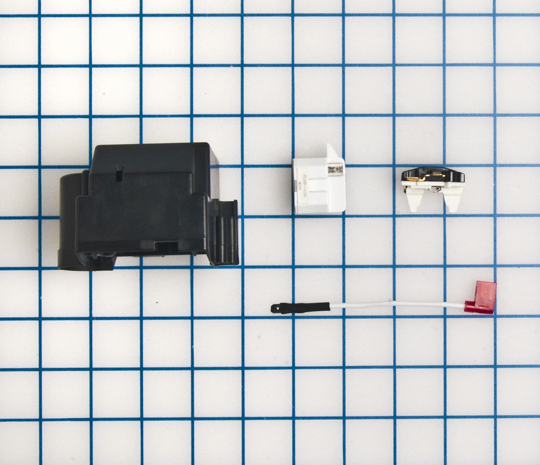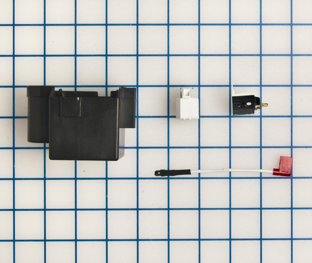 Replacement overload relay kit used on some Amana, Crosley, Magic Chef, Maytag, and Whirlpool refrigerator models.