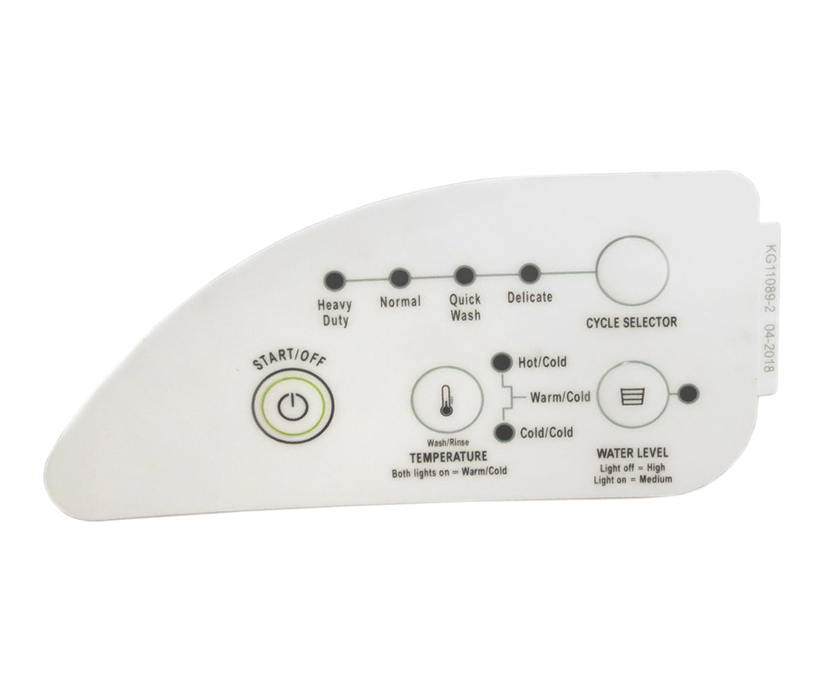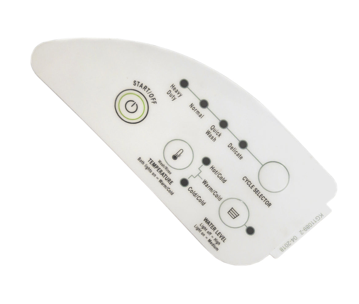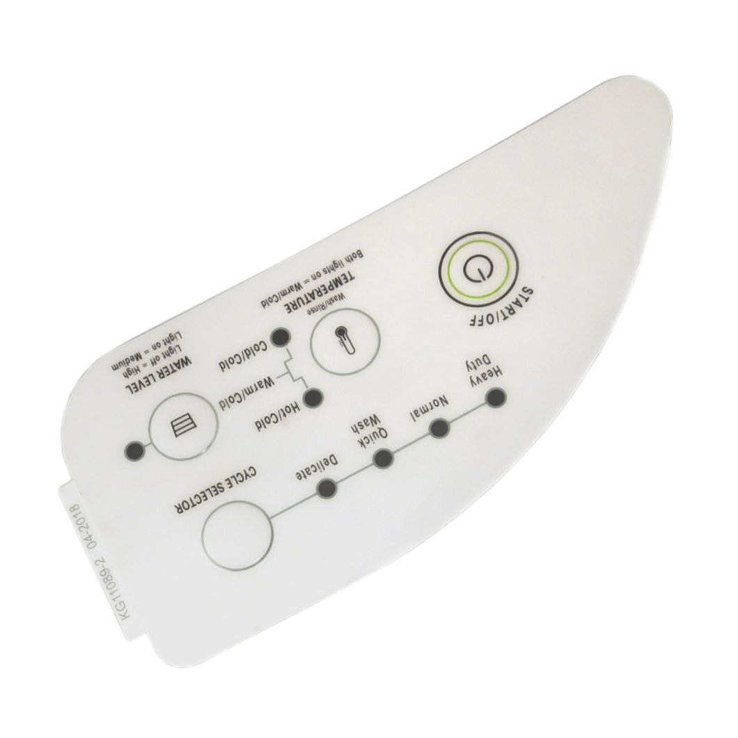 Replacement control overlay used on some Whirlpool washer models.