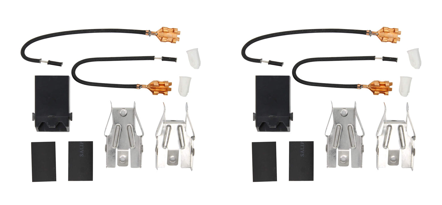 - Includes (1) receptacle block, (2) metal brackets, (2) hi-temp wire leads, (2) wire connectors, and (2) heat shrink insulators.