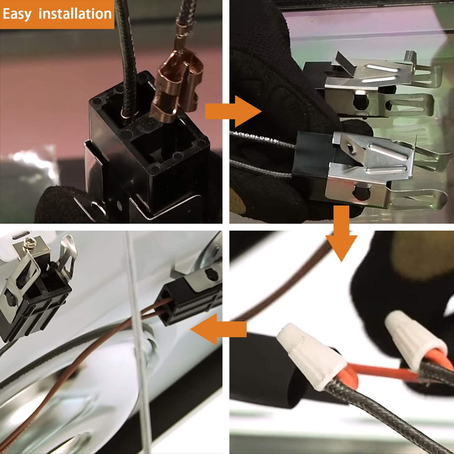 - Includes (1) receptacle block, (2) metal brackets, (2) hi-temp wire leads, (2) wire connectors, and (2) heat shrink insulators.