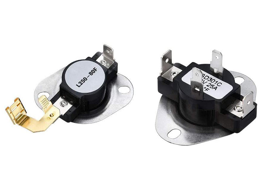 Replacement cycling thermostat and limit thermostat used on some Whirlpool dryer models.