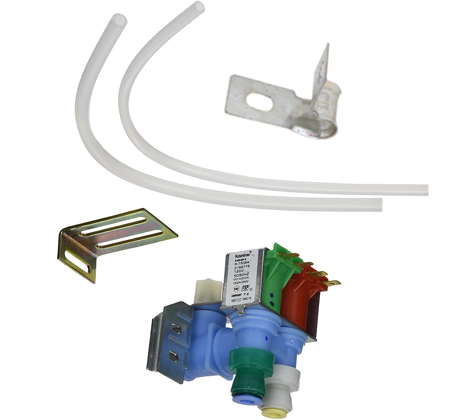 Replacement ice maker kit used on some Amana, Crosley, Estate, Ikea, Inglis, Jenn Air, Kenmore, KitchenAid, Maytag, Roper, Thermador, and Whirlpool refrigerator models.