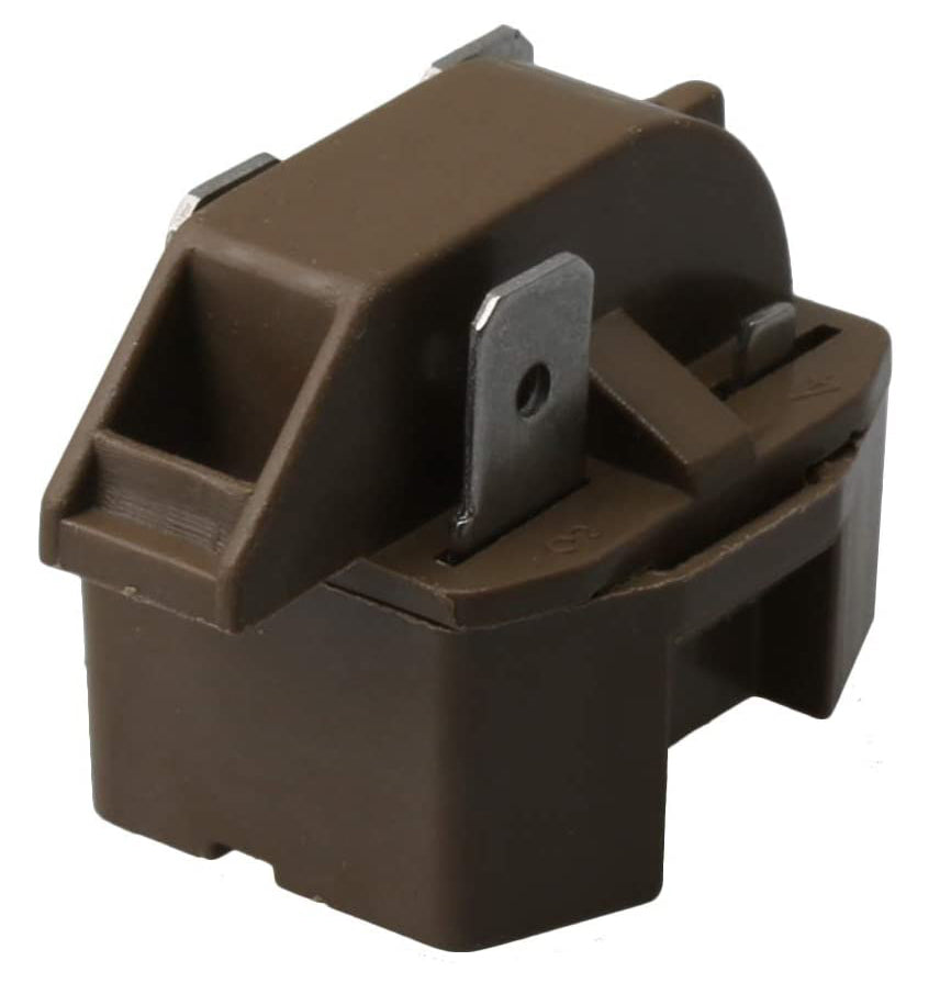 Replacement compressor overload kit used on some Amana, Crosley, Estate, Inglis, Kenmore, KitchenAid, Maytag, Roper, and Whirlpool refrigerator models.