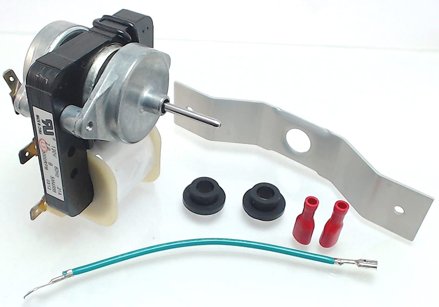 Replacement evaporator fan motor used on some Admiral, Amana, Crosley, Jenn-Air, Kenmore, Magic Chef, Maytag, Norge, and Whirlpool refrigerator models.