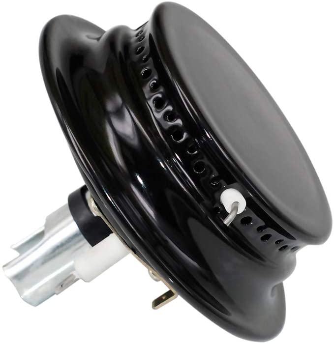 Replacement burner used on some Admiral, Amana, Crosley, Hardwick, Jenn Air, Magic Chef, Maytag, Montgomery Wards, Norge, Samsung and Whirlpool range models.