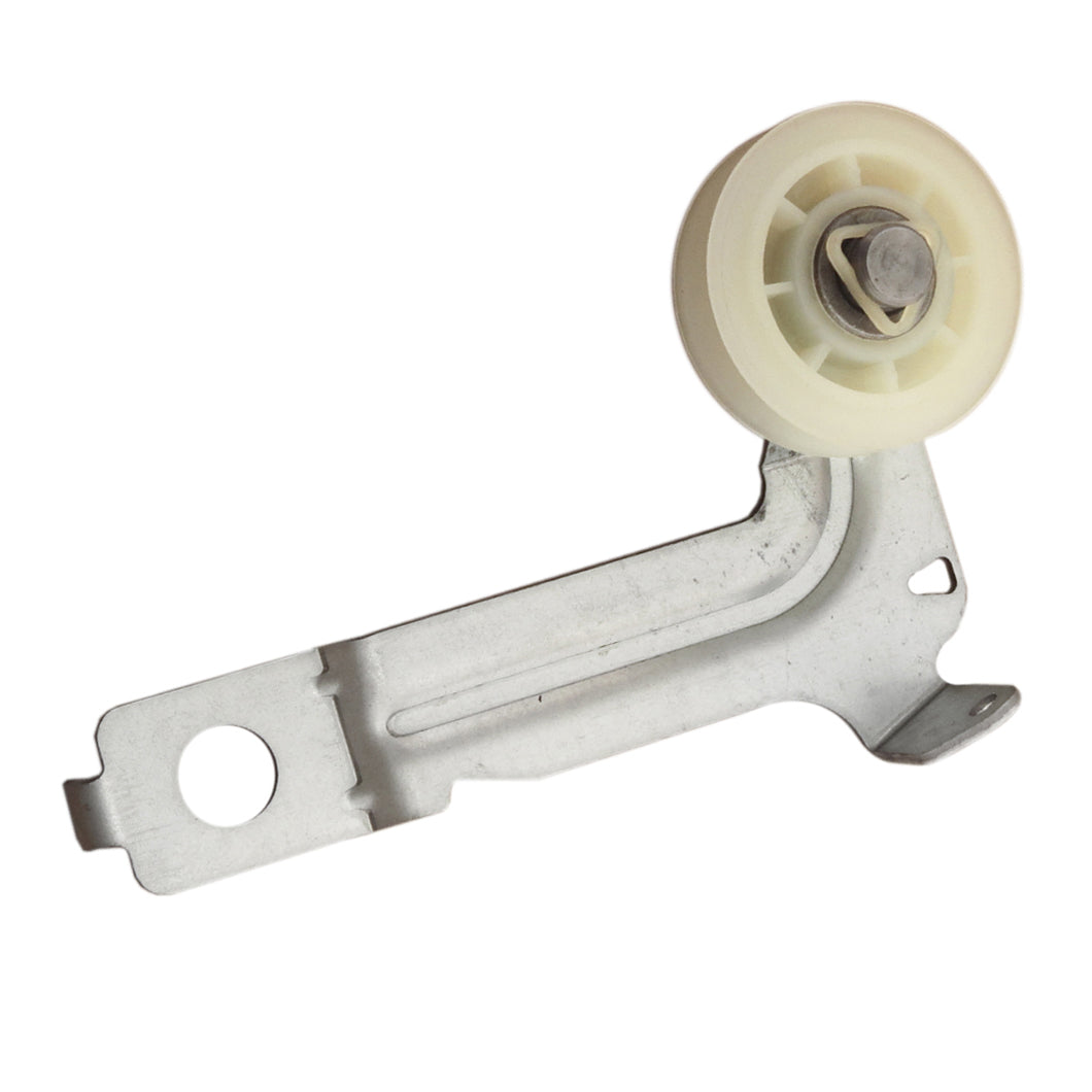 Replacement idler roller and belt kit used on some Admiral, Amana, Crosley, Inglis, Kenmore, KitchenAid, Maytag, and Whirlpool dryer models.
