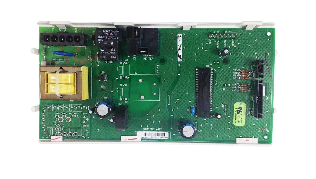 Replacement control board used on some Kenmore and Whirlpool dryer models.