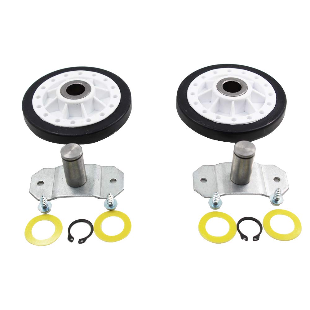 Replacement rear roller kit used on some Admiral, Amana, Crosley, Jenn-Air, Magic Chef, Maytag, Montgomery Wards, Norge and Whirlpool dryer models.