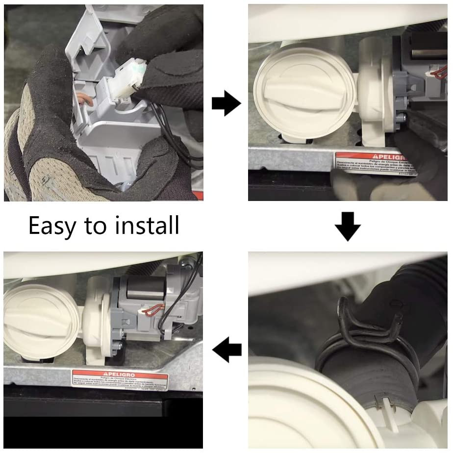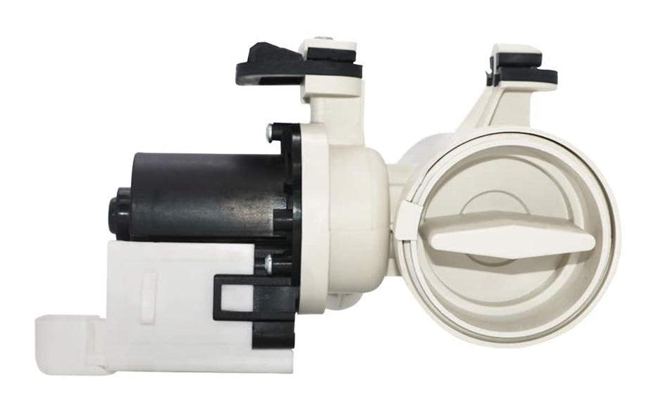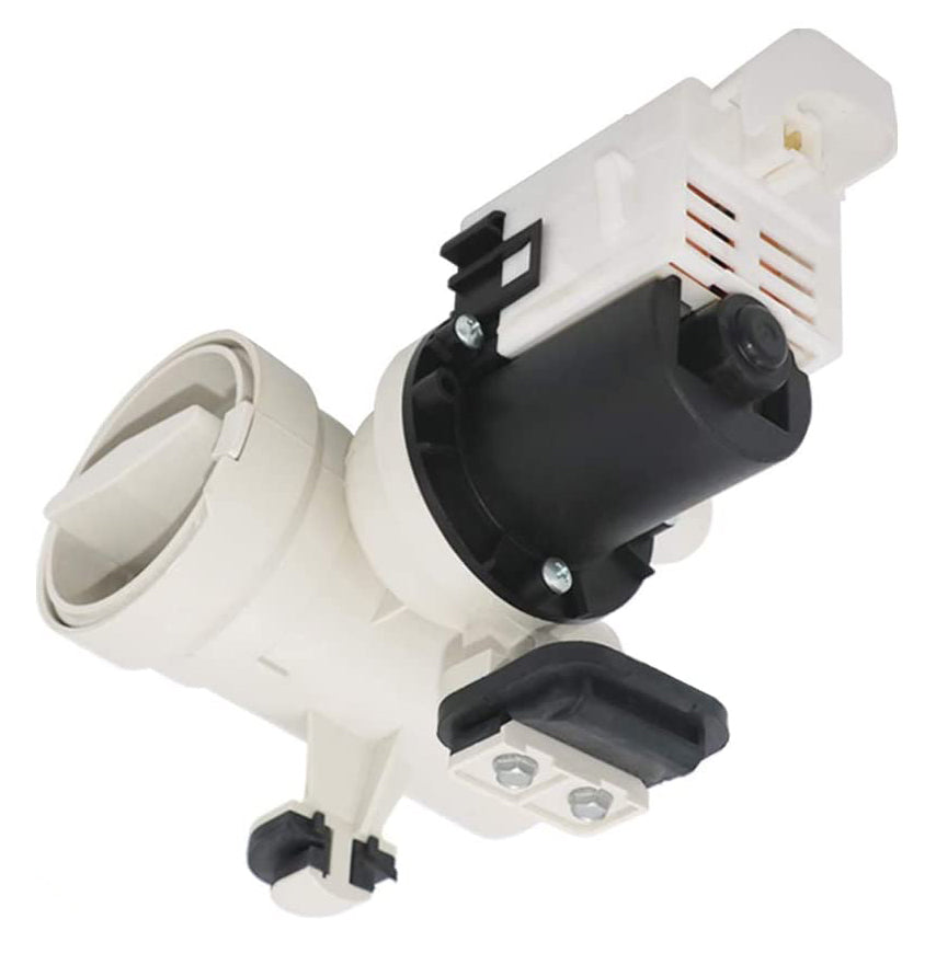 Replacement drain pump used on some Amana, Inglis, Kenmore, Maytag, and Whirlpool washer models.