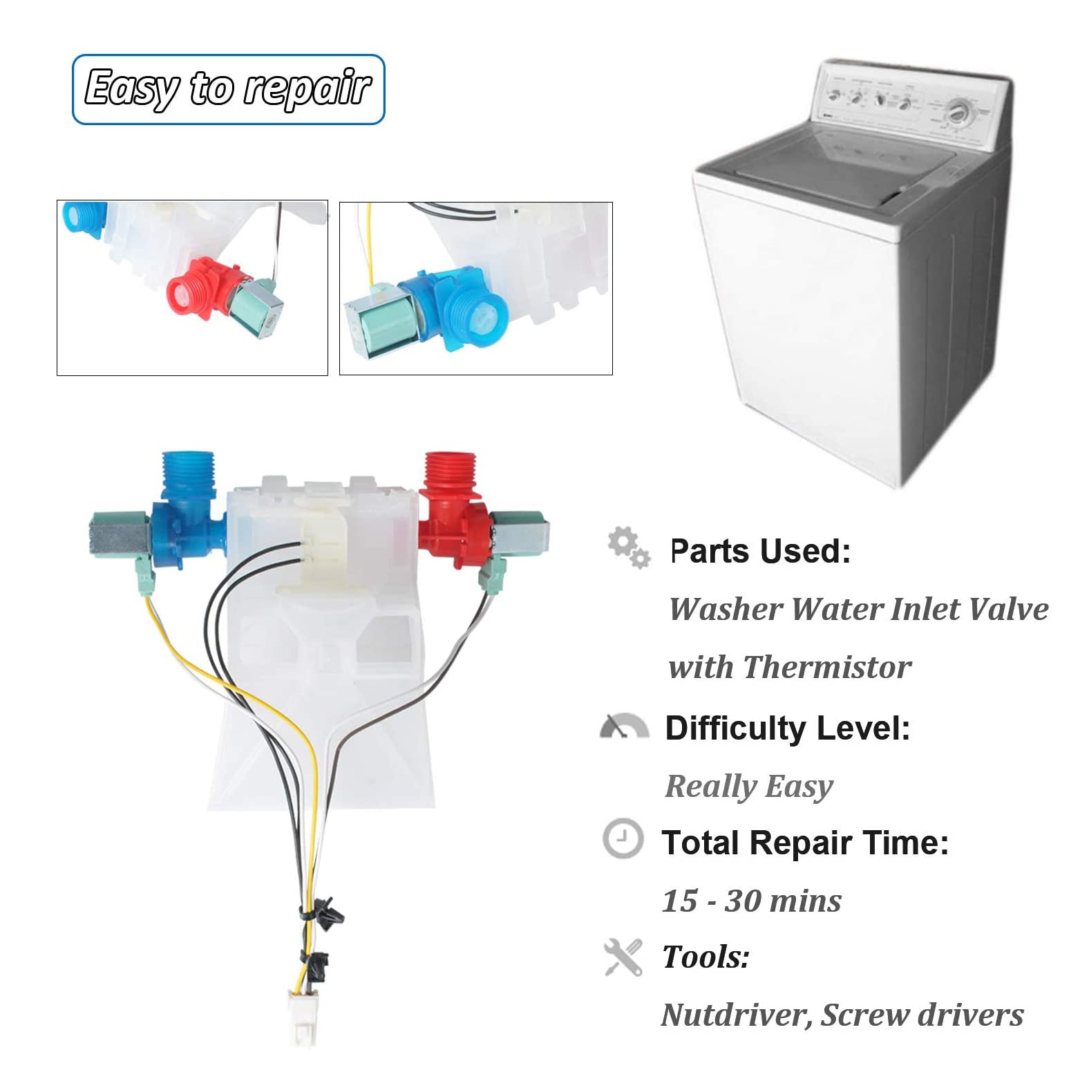 - Includes hot water valve, cold water valve, vacuum break and thermistor sensor.