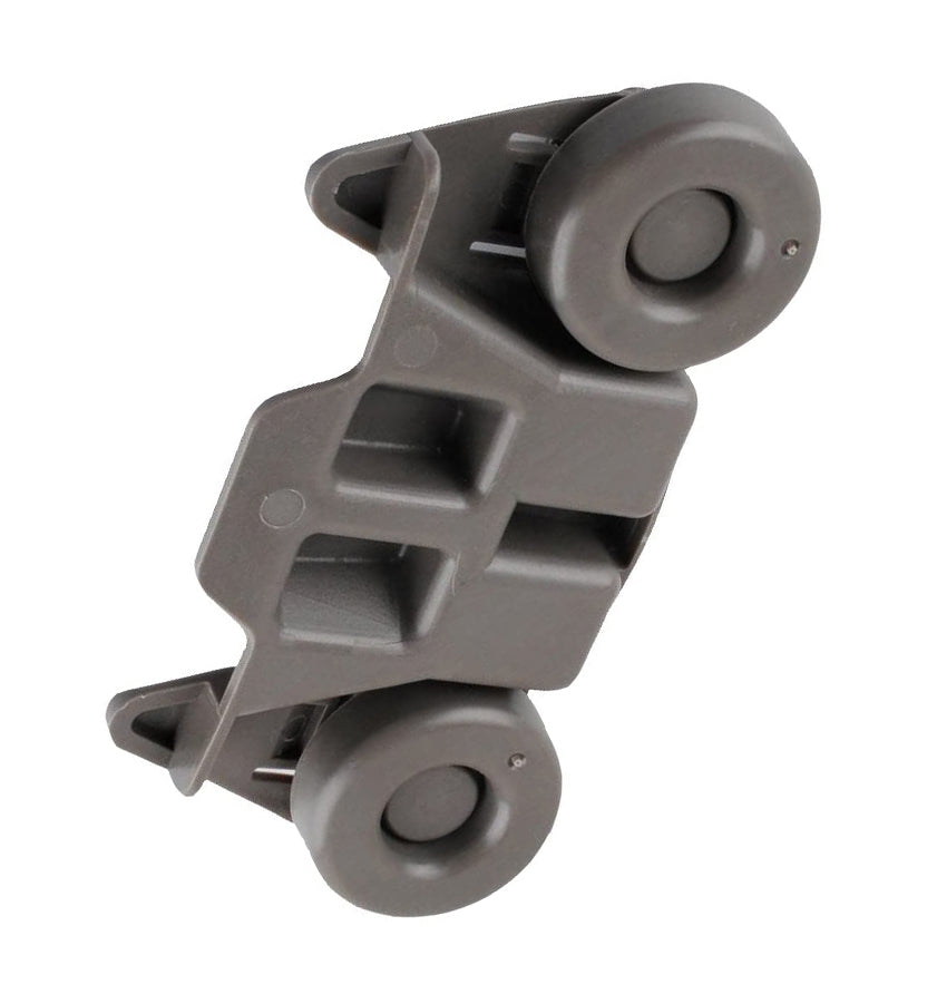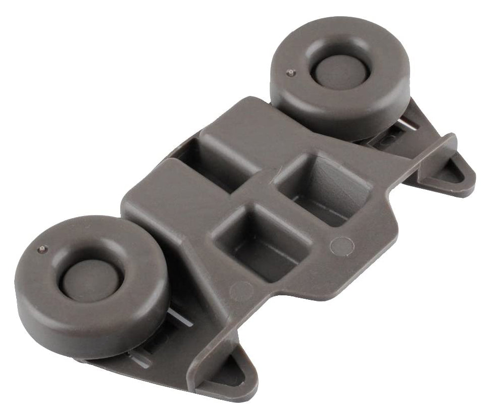 Replacement wheel assembly used on some Ikea, Jenn-Air, Kenmore, KitchenAid, and Whirlpool dishwasher models.