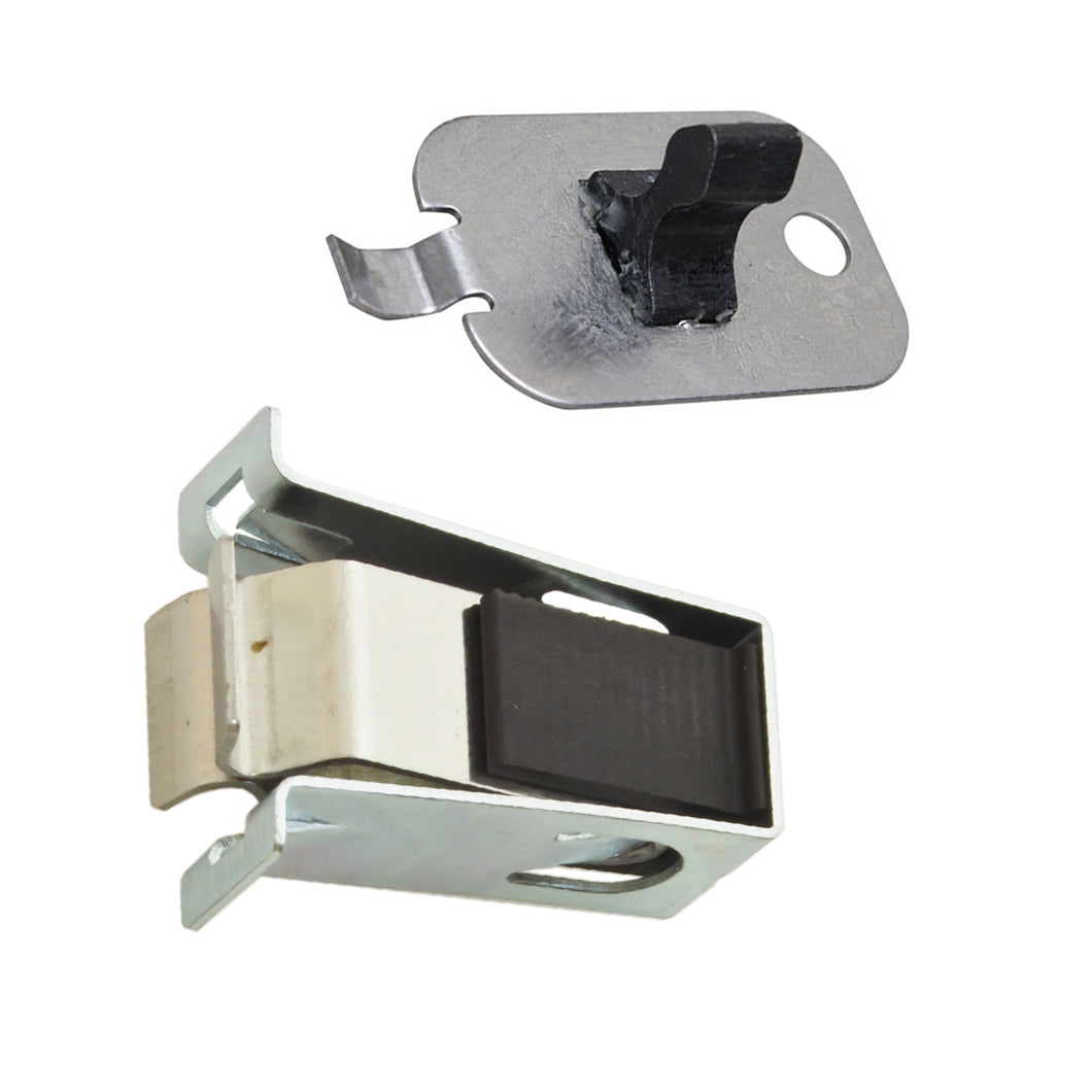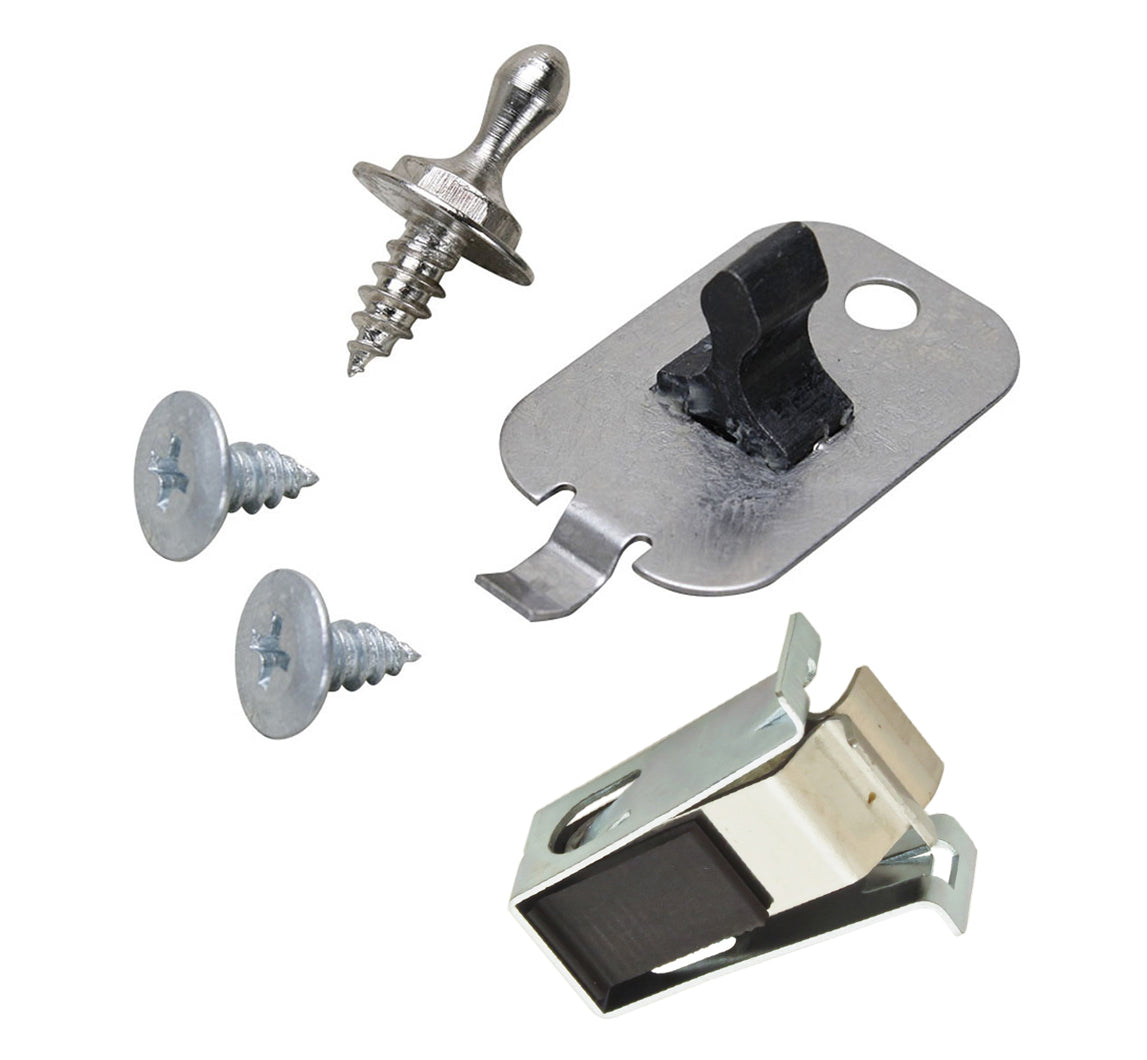 Replacement door strike and catch kit used on some Whirlpool, Kenmore and Maytag dryer models.