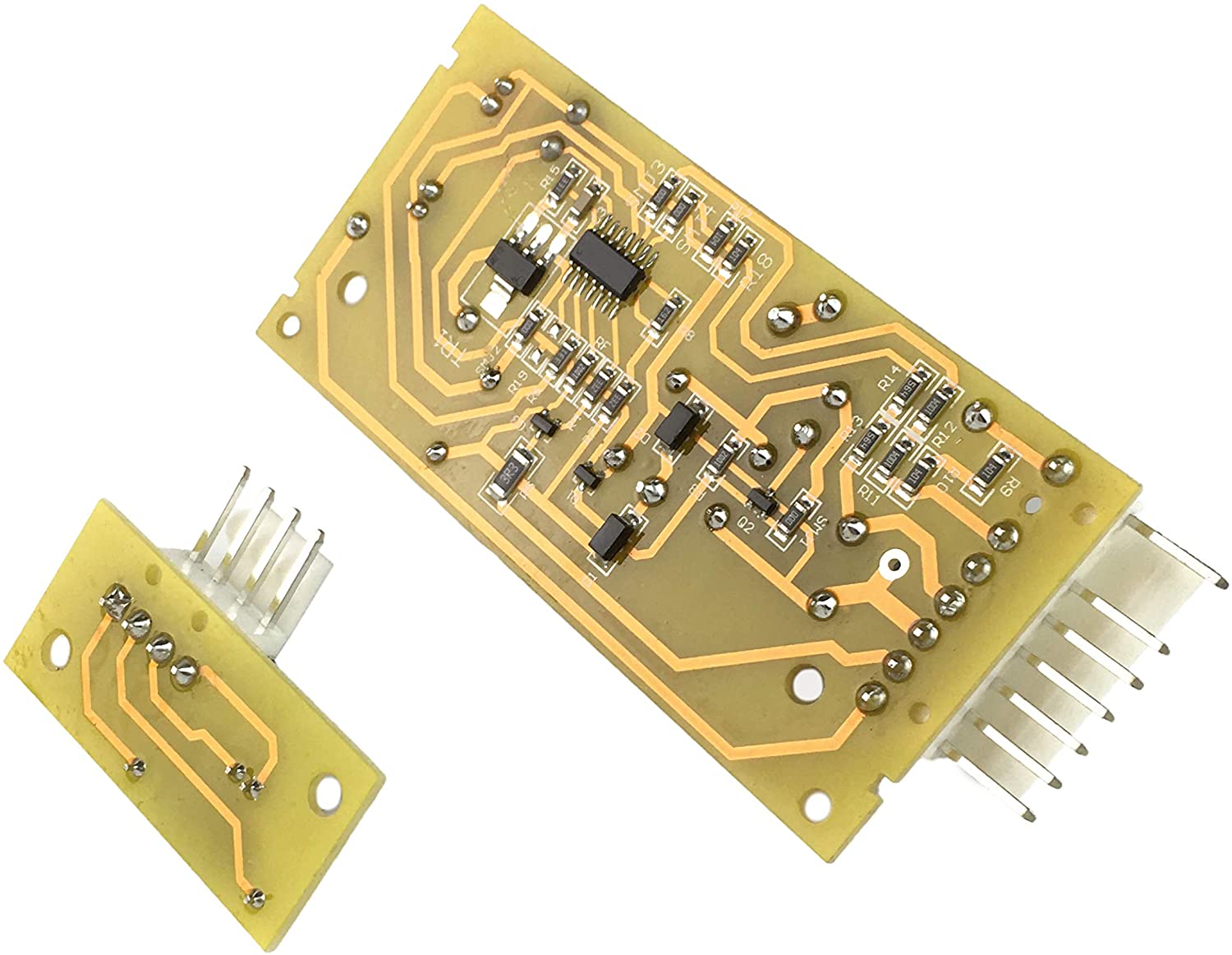 Replacement ice maker control board set used on Jenn-Air, Kenmore, KitchenAid, Maytag, and Whirlpool refrigerator models.