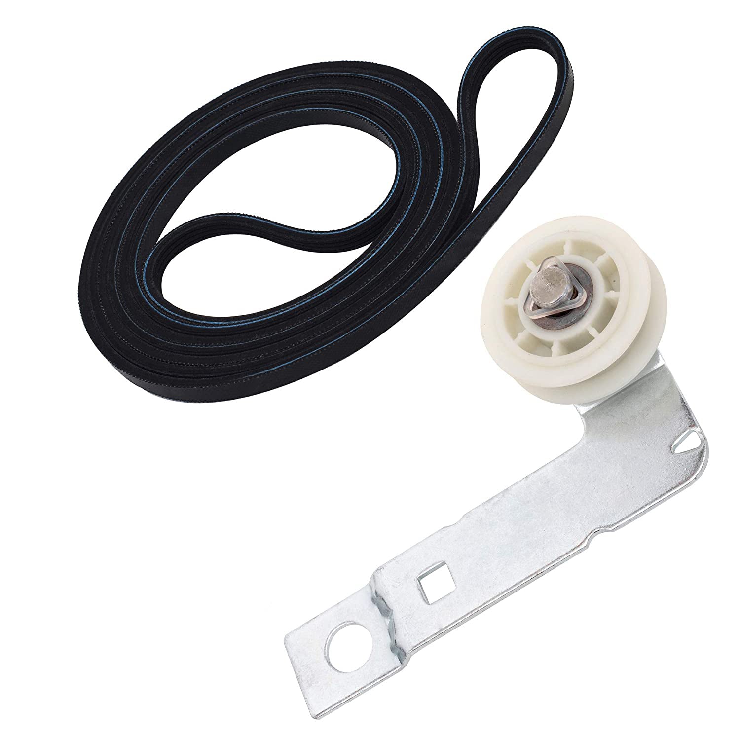 Replacement drive belt and pulley used on some Admiral, Amana, Crosley, Inglis, Kenmore, KitchenAid, Maytag, and Whirlpool dryer models.