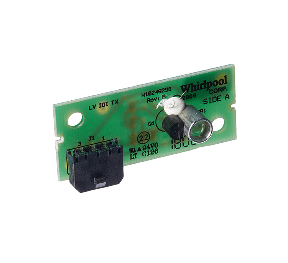 Replacement ice level emitter board used on some Ikea, Jenn-Air, Kenmore, KitchenAid, Maytag, and Whirlpool refrigerator models.