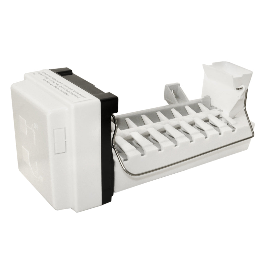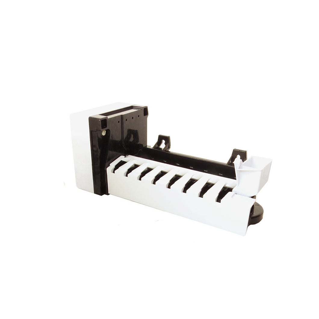 Replacement ice maker assembly used on some KitchenAid, Maytag, and Whirlpool refrigerator models.
