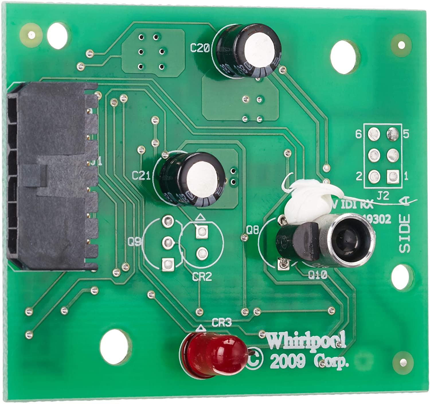 Replacement ice level receiver board used on some Ikea, Jenn-Air, Kenmore, KitchenAid, Maytag, and Whirlpool refrigerator models.