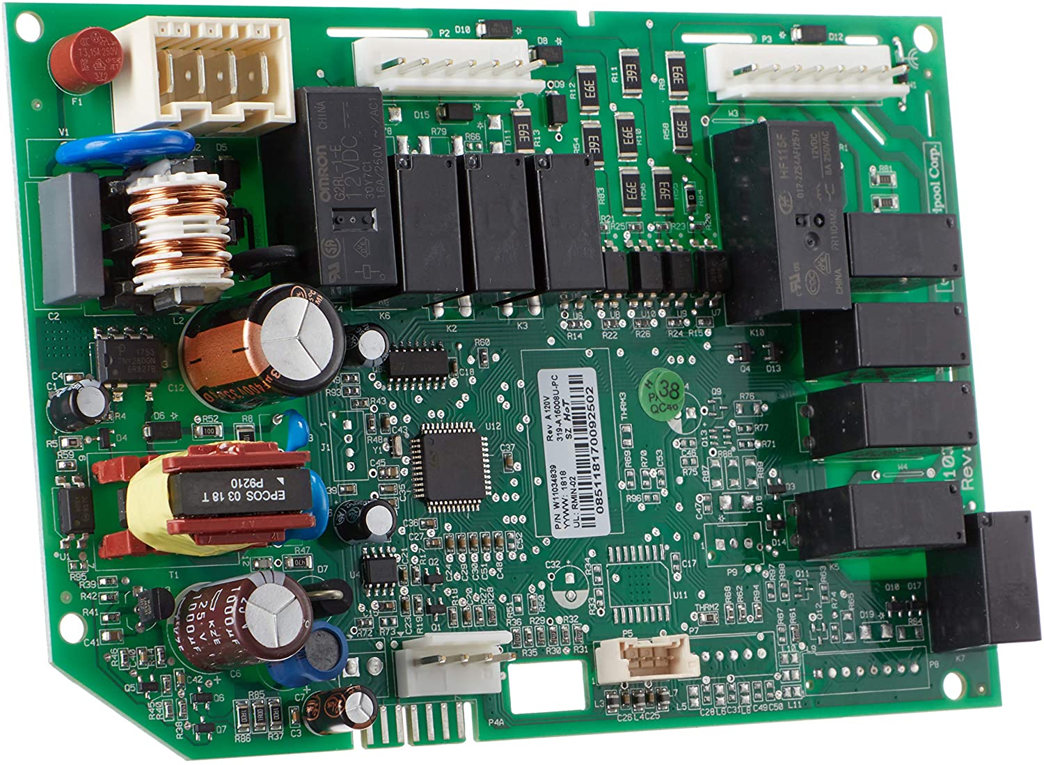 Replacement main control board used on some Ikea, Kenmore, KitchenAid, Maytag, and Whirlpool refrigerator models.